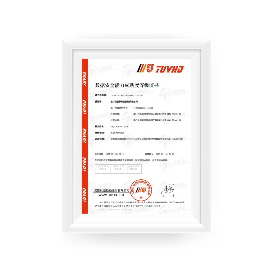 近日,廈門物通博聯(lián)網(wǎng)絡(luò)科技有限公司(簡(jiǎn)稱:物通博聯(lián))成功通過(guò)數(shù)據(jù)安全能力成熟度(簡(jiǎn)稱“DSMM”)三級(jí)認(rèn)證,標(biāo)志著公司在數(shù)據(jù)安全管理與保護(hù)領(lǐng)域達(dá)到了行業(yè)先進(jìn)水平。