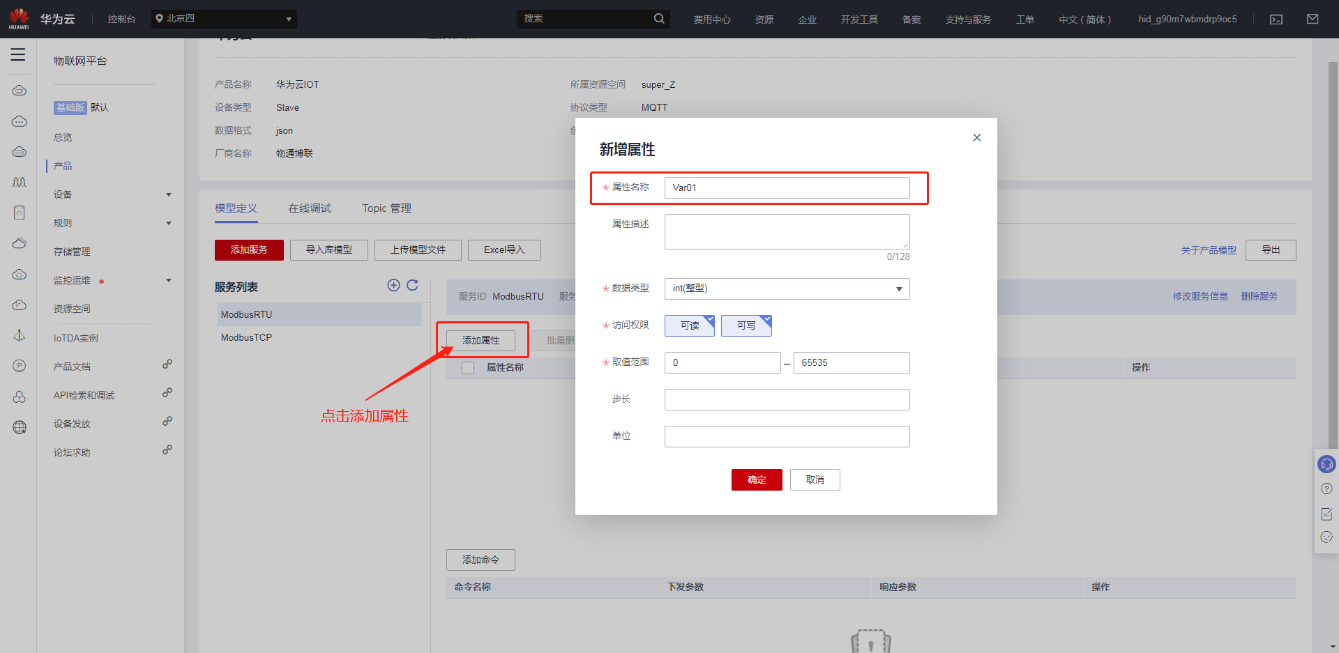 添加變量名稱,網(wǎng)關(guān)端“變量名稱”與華為云IOT的“屬性名稱”對(duì)應(yīng);