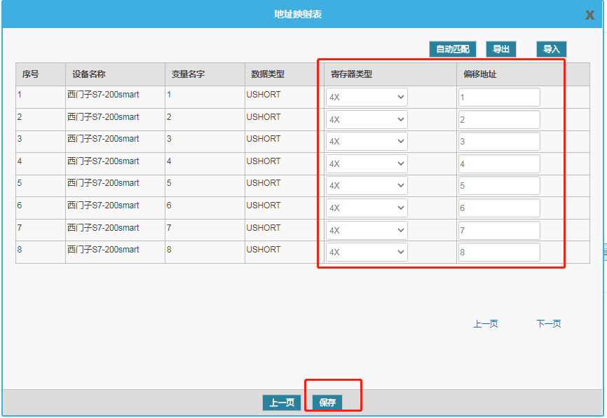 配置“地址映射表”,寄存器類型根據(jù)采集配置的數(shù)據(jù)類型進(jìn)行選擇