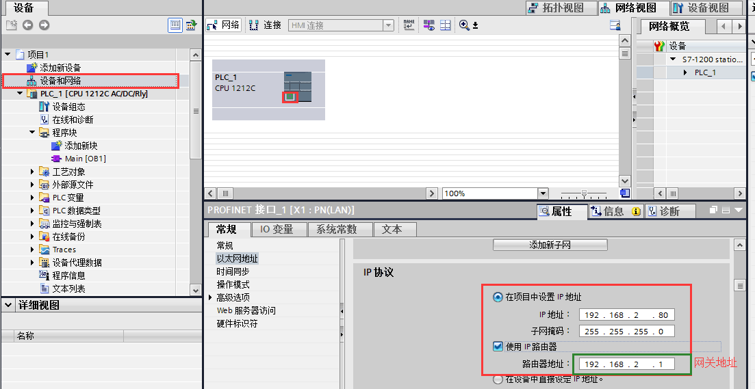 1、打開項目后,確認Siemens控制器以太網(wǎng)參數(shù)。