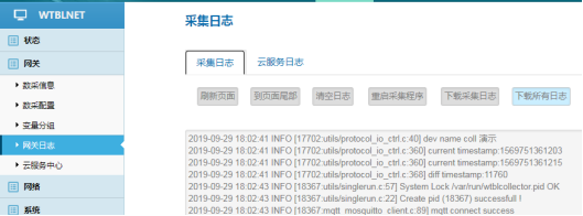 網(wǎng)關(guān)運(yùn)行出現(xiàn)異常時(shí),請(qǐng)將日志狀態(tài)調(diào)整為:調(diào)試。下載網(wǎng)關(guān)日志發(fā)送至物通博聯(lián)技術(shù)支持工程師處診斷。