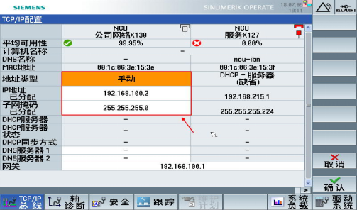 1.1.設(shè)置 X130 口 IP 地址:NCU 通過 Ethernet 接口 X130 連接到公司網(wǎng)絡(luò)中,按如下路徑進入 X130 參數(shù)設(shè)置界面。