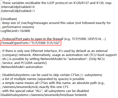 第四步:備份好后打開文件,找到;FirewallOpenPorts="TCP/5900 TCP/102"這一行,把前面的“;”分號刪除,然后保存,把文件拖拽到右邊CNC文件進行覆蓋,覆蓋過程中會出現(xiàn)權(quán)限不夠(不用管),直接點OK。然后點擊打開文件進行確認是否修改成功。