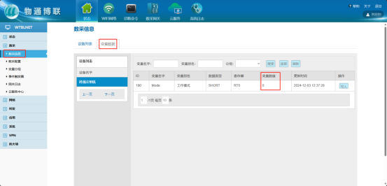 等待右下角彈出成功提示框后,點(diǎn)擊“數(shù)采信息”->“變量數(shù)據(jù)”,即可在“變量值”一列查看采集結(jié)果。