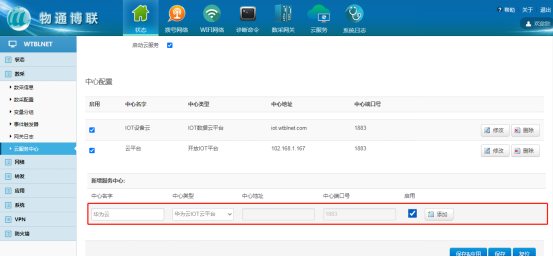(4)第三方平臺(tái)設(shè)備接入:例如阿里云、華為云、百度云等第三方設(shè)備接入平臺(tái),網(wǎng)關(guān)已開(kāi)發(fā)好適配此類第三方平臺(tái)的物模型接入,例如華為云,填寫相關(guān)連接參數(shù),配置內(nèi)容,即可將數(shù)據(jù)上傳至華為云IOT設(shè)備接入模型中(網(wǎng)關(guān)支持的第三方接入云,都有詳細(xì)的配置手冊(cè))。
