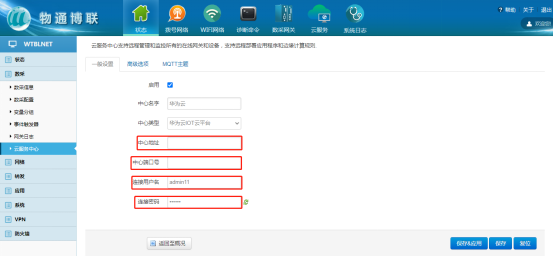 點(diǎn)擊修改后進(jìn)入中心配置界面,填寫對(duì)應(yīng)的MQTT連接參數(shù);