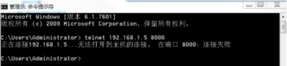 telnetip 端口,此圖為端口不通的示例,如果端口通后會進(jìn)入一個(gè)黑色框中。