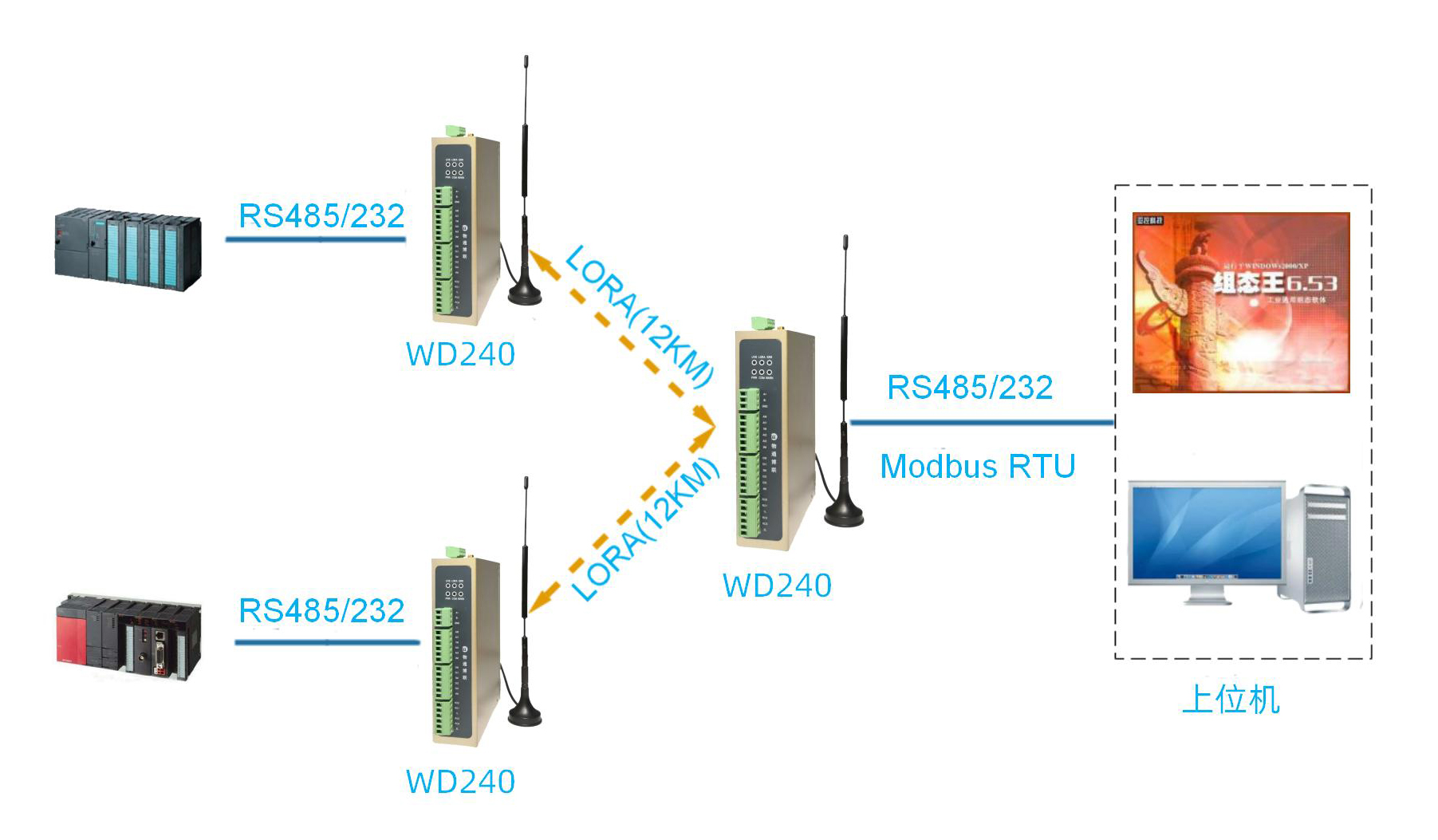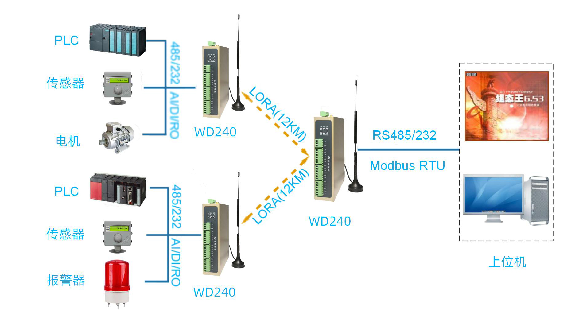 03、上位機通過LORA讀取WD240的IO和下掛的PLC數(shù)據(jù)