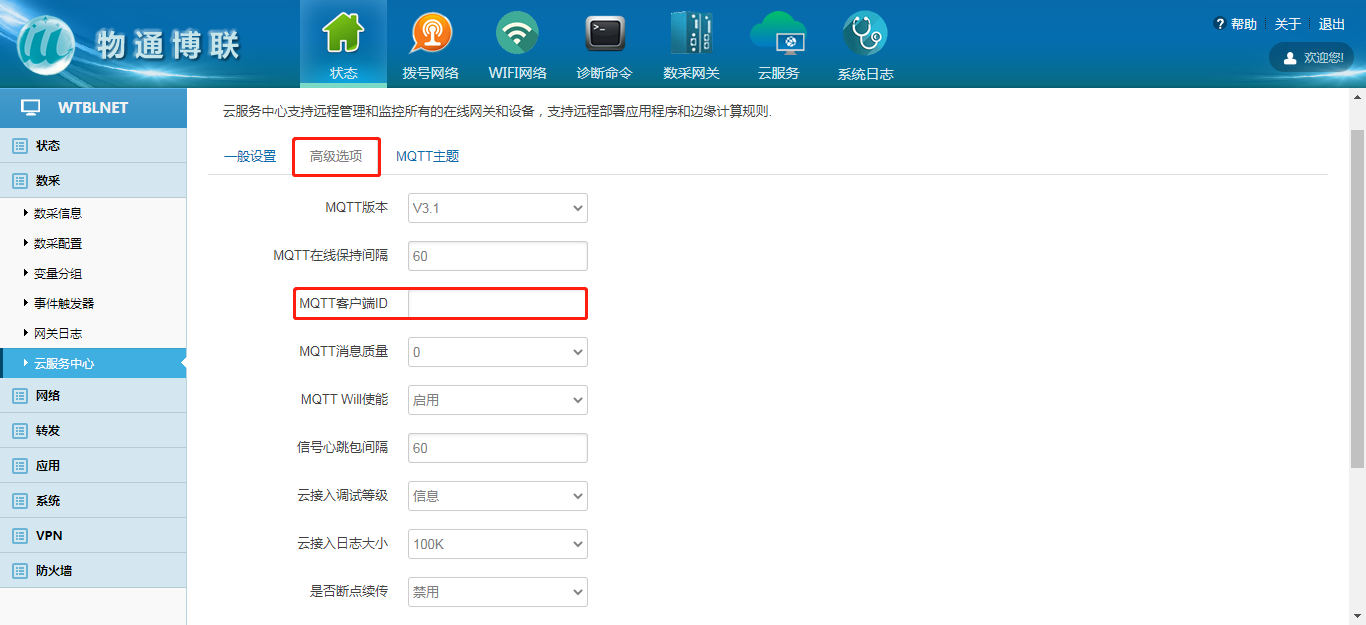 在高級選項中配置MQTT客戶端ID連接參數(shù),填寫完畢后保存并應(yīng)用;