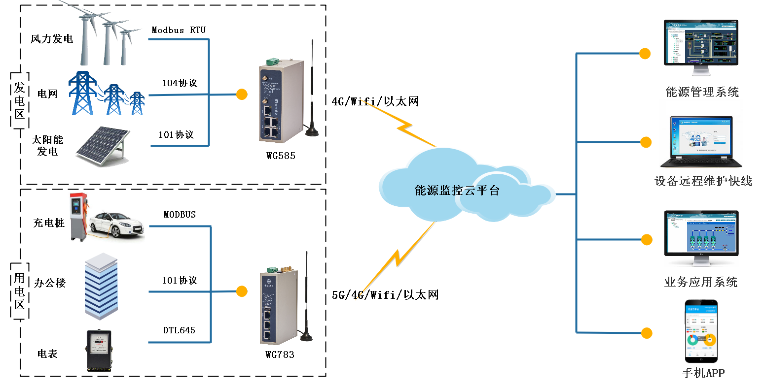 物通博聯(lián)配電室智能網(wǎng)關(guān)具有數(shù)據(jù)采集、協(xié)議解析、邊緣計(jì)算、云端接入等功能,采集配電室現(xiàn)場(chǎng)的高壓柜、低壓柜、變壓器、斷路器、溫濕度、漏水、水位、空調(diào)、風(fēng)機(jī)、除濕機(jī)、門(mén)禁、煙霧、明火、避雷裝置、視頻錄像等設(shè)備的數(shù)據(jù),經(jīng)過(guò)協(xié)議轉(zhuǎn)換、邊緣計(jì)算,數(shù)據(jù)標(biāo)準(zhǔn)化后加密上傳到監(jiān)控平臺(tái),通過(guò)平臺(tái)對(duì)配電室內(nèi)所有設(shè)備運(yùn)行狀態(tài)、設(shè)備數(shù)據(jù)進(jìn)行監(jiān)控,實(shí)現(xiàn)對(duì)電力、環(huán)境、安全的一體化監(jiān)控。