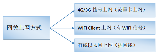 進入網(wǎng)關WEB管理界面(http://192.168.2.1/)設置聯(lián)網(wǎng)方式,可選WIFI網(wǎng)絡、3/4G網(wǎng)絡(需要在網(wǎng)關通電前插入手機SIM卡,默認已開啟3/4G網(wǎng)絡)、WAN外網(wǎng),三者只能選一個。