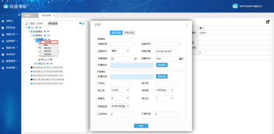 登錄物通博聯(lián)·設備云平臺(https://iot.WideIOT.com/),進入“我的設備”編輯模式,添加節(jié)點、設備與機型信息。