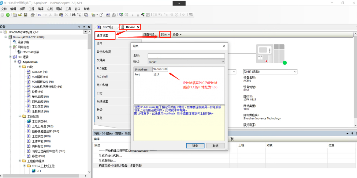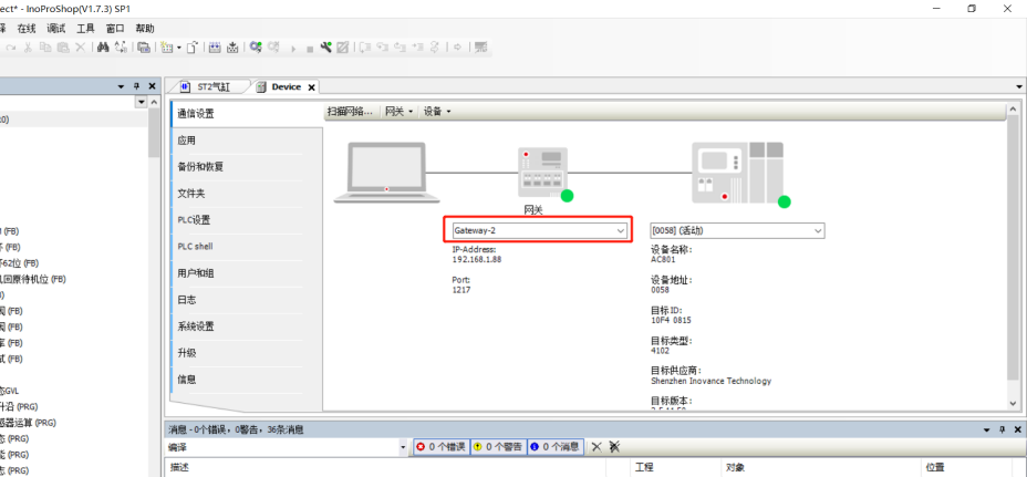 1、建立通道后,打開InoProShop ,根據(jù)連接的AM600型號全稱,選擇工程型號。