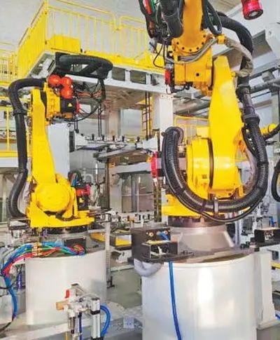 河北保定長城精工自動化工廠,5G—A汽車柔性產(chǎn)線上,龐大的機(jī)械臂吸起汽車頂蓋,空中盤旋一圈,便涂抹完頂蓋上的膠條,一套動作行云流水。