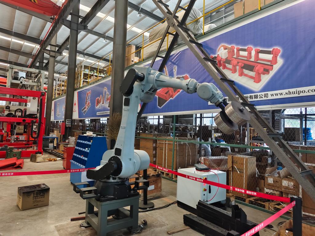 濟(jì)寧市梁山縣一家裝備制造企業(yè)自主研發(fā)的工業(yè)機(jī)器人。新華社記者邵魯文 攝