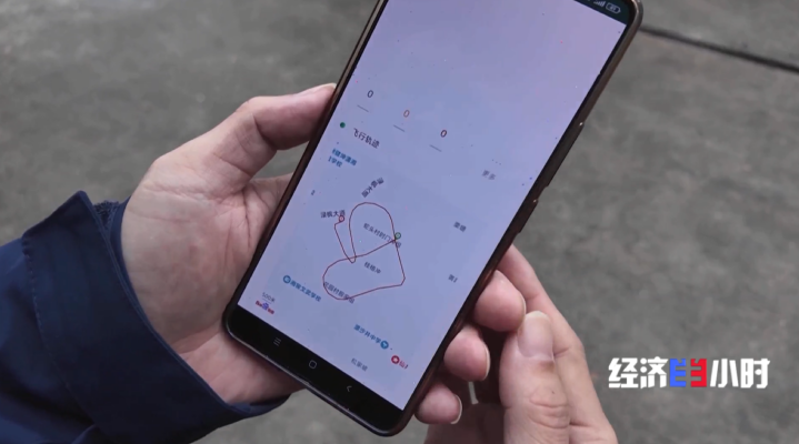 體驗(yàn)結(jié)束后,技術(shù)人員在手機(jī)上輸入了記者剛剛的飛行時(shí)間,屏幕上立刻生成了飛機(jī)的飛行軌跡。