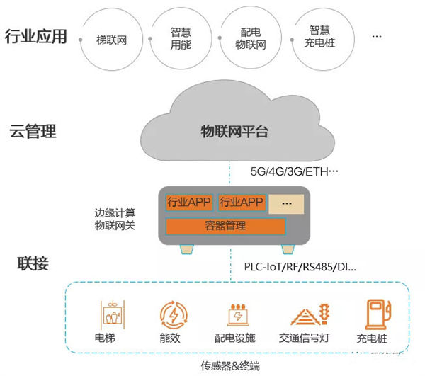 通過物聯(lián)網(wǎng)平臺,應(yīng)用云計算技術(shù),實(shí)現(xiàn)邊緣物聯(lián)設(shè)備(如網(wǎng)絡(luò)、設(shè)備、容器及應(yīng)用)的統(tǒng)一云化管理,同時北向支持與其他行業(yè)應(yīng)用系統(tǒng)靈活對接。