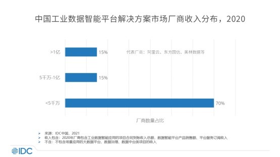 目前廠商布局大多集中在業(yè)務(wù)流程相似度高、付費能力強(qiáng)、數(shù)據(jù)基礎(chǔ)好、工藝復(fù)雜的能源電力、石油石化、裝備制造、鋼鐵、半導(dǎo)體等少數(shù)行業(yè),多數(shù)廠商選擇重點布局2-3個行業(yè)或場景。由于項目難度大,周期長,多數(shù)廠商年收入在5千萬以下,市場格局未來變數(shù)較大。重點子市場——平臺解決方案市場,2020年,市場總規(guī)模15.98億元人民幣,同比增長42.9%。