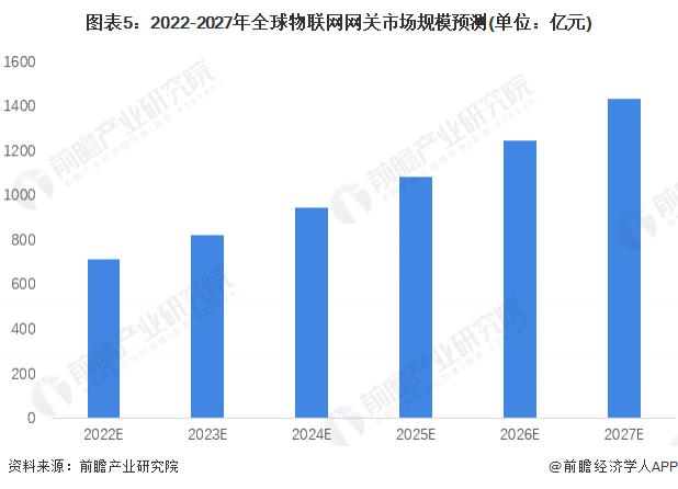 隨著全球物聯(lián)網(wǎng)行業(yè)的發(fā)展,未來全球物聯(lián)網(wǎng)網(wǎng)關(guān)行業(yè)將有進(jìn)一步的增長,根據(jù)全球區(qū)域市場的情況來看,目前亞洲地區(qū)的增速是全球增速最快的地區(qū),中國物聯(lián)網(wǎng)網(wǎng)關(guān)行業(yè)的增速為 18%。根據(jù)預(yù)測,2027 年全球物聯(lián)網(wǎng)網(wǎng)關(guān)行業(yè)市場規(guī)模將達(dá)到 1434 億元。