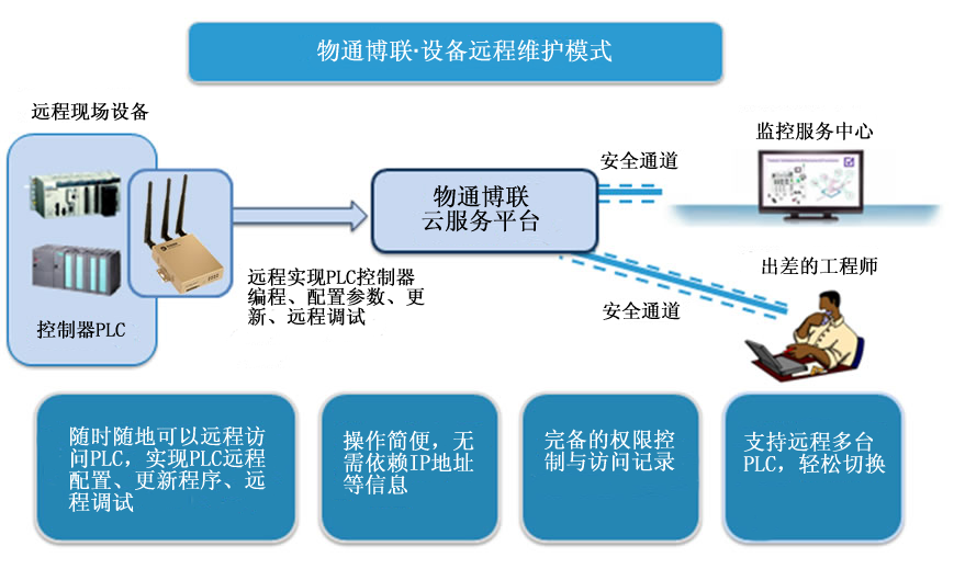 遠(yuǎn)程維護(hù)設(shè)備快線,為企業(yè)工程師搭建一條通往現(xiàn)場(chǎng)設(shè)備的維護(hù)通道,讓企業(yè)的工程師在任何可以上網(wǎng)的地方通過(guò)物通博聯(lián)設(shè)備快線可以快速遠(yuǎn)程維護(hù)分布在世界各地的設(shè)備。