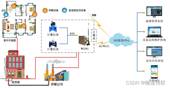 智慧供暖是物通博聯(lián)針對以上問題開發(fā)的工業(yè)物聯(lián)網(wǎng)方案。通過工業(yè)網(wǎng)關將供暖系統(tǒng)連接起來,對溫度、壓力、流量、開關量等等數(shù)據(jù)進行采集,實現(xiàn)遠程監(jiān)控、遠程控制和遠程維護。