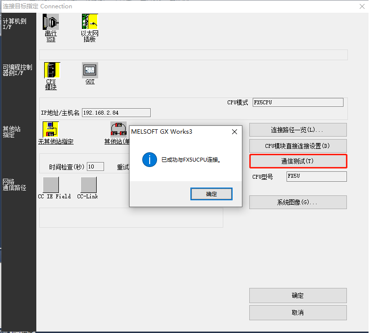 2、打開(kāi)MELSOFT GX Works3,選擇控制器系列,設(shè)置“其他連接方式”通訊。