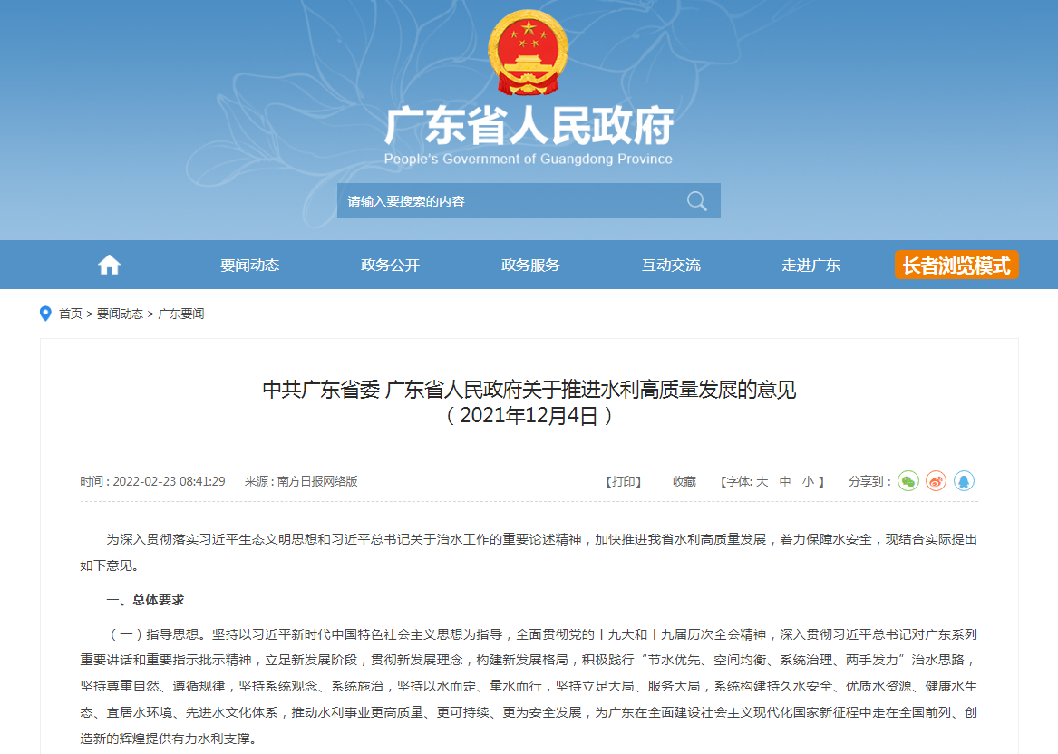 廣東省人民政府關(guān)于推進(jìn)水利高質(zhì)量發(fā)展的意見