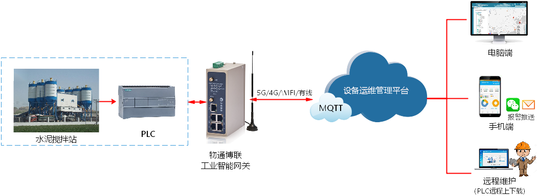 隨著大規(guī)模基礎(chǔ)設(shè)施建設(shè)的不斷開(kāi)展、水泥攪拌設(shè)備的需求與日遞增,對(duì)其維護(hù)保養(yǎng)的要求也在不斷提高。在項(xiàng)目實(shí)施中,水泥攪拌機(jī)可能遍布全國(guó)各地,對(duì)于設(shè)備制造商提供設(shè)備運(yùn)維服務(wù)帶來(lái)較大挑戰(zhàn)。一方面,企業(yè)需要付出較多人員、時(shí)間和精力前往現(xiàn)場(chǎng)出差,影響服務(wù)效率;另一方面,頻繁出差也在加重企業(yè)的成本負(fù)擔(dān)。因此,建立一套高效及時(shí)的設(shè)備運(yùn)維系統(tǒng)有其必要性。