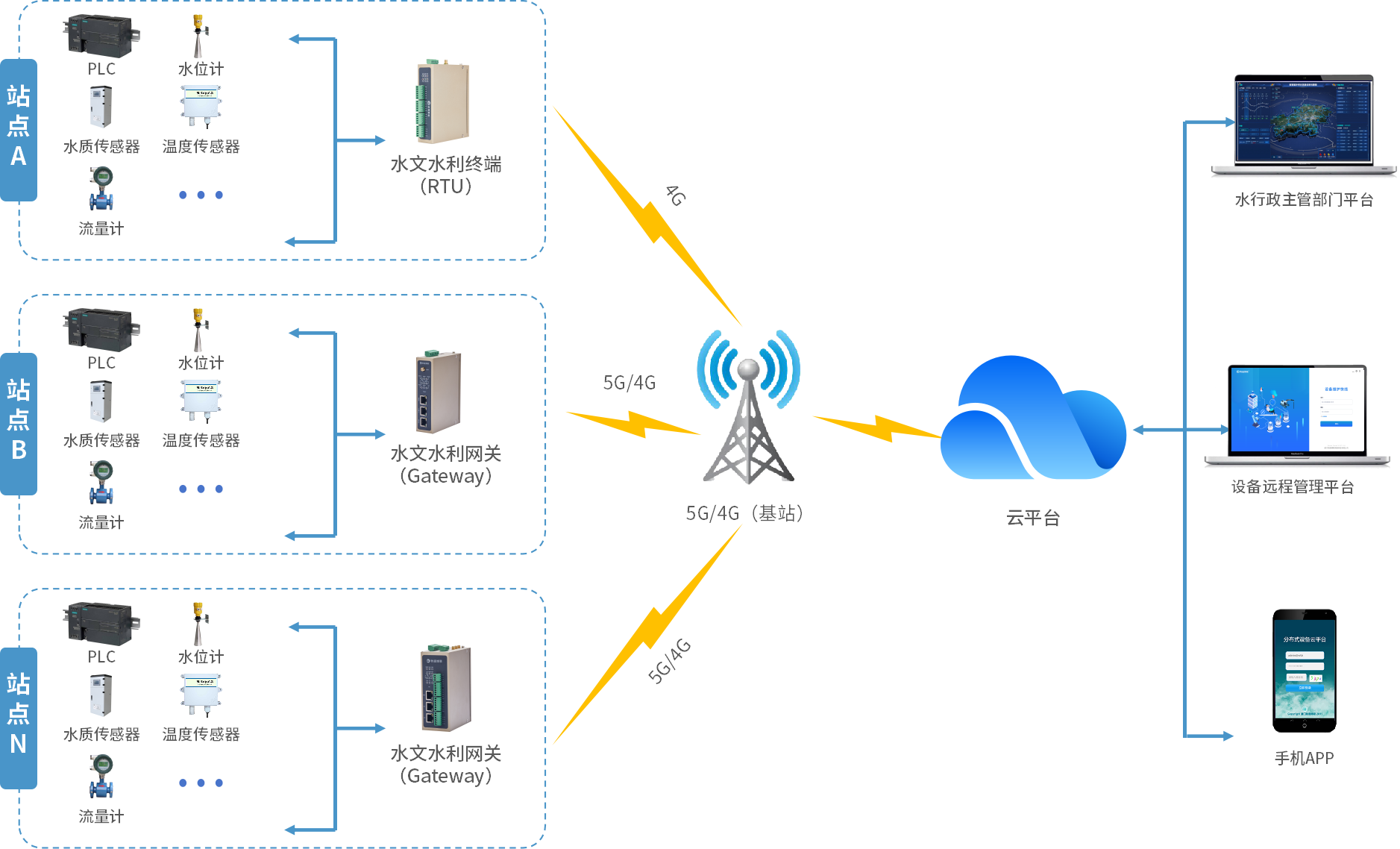 對此,物通博聯(lián)提供地下水在線監(jiān)測預(yù)警系統(tǒng)解決方案。地下水監(jiān)測井一般在野外,內(nèi)部包含水位計、流量計、水溫計、水質(zhì)監(jiān)測儀等傳感器,通過接入物通博聯(lián)水利水文網(wǎng)關(guān)(RTU)并通過5G/4G無線網(wǎng)絡(luò)遠(yuǎn)程傳輸?shù)剿姓鞴懿块T平臺中,可以實(shí)現(xiàn)對水位、水量、水溫、水質(zhì)等多種參數(shù)的實(shí)時在線監(jiān)測、超限預(yù)警、智能管理等功能,為地下水監(jiān)測管理提供高效、精準(zhǔn)、可靠的工作手段。