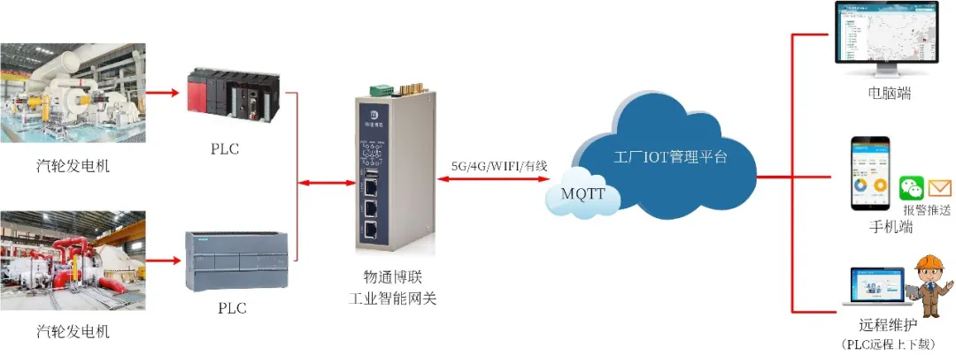 物通博聯(lián)·工業(yè)智能網(wǎng)關(guān)支持采集PLC、傳感器及智能儀表等設(shè)備數(shù)據(jù),實(shí)現(xiàn)5G/4G/WIFI/以太網(wǎng)等方式對(duì)接到云平臺(tái)或上位機(jī)中,同時(shí)具備斷點(diǎn)續(xù)傳功能,確保數(shù)據(jù)完整性與準(zhǔn)確性。