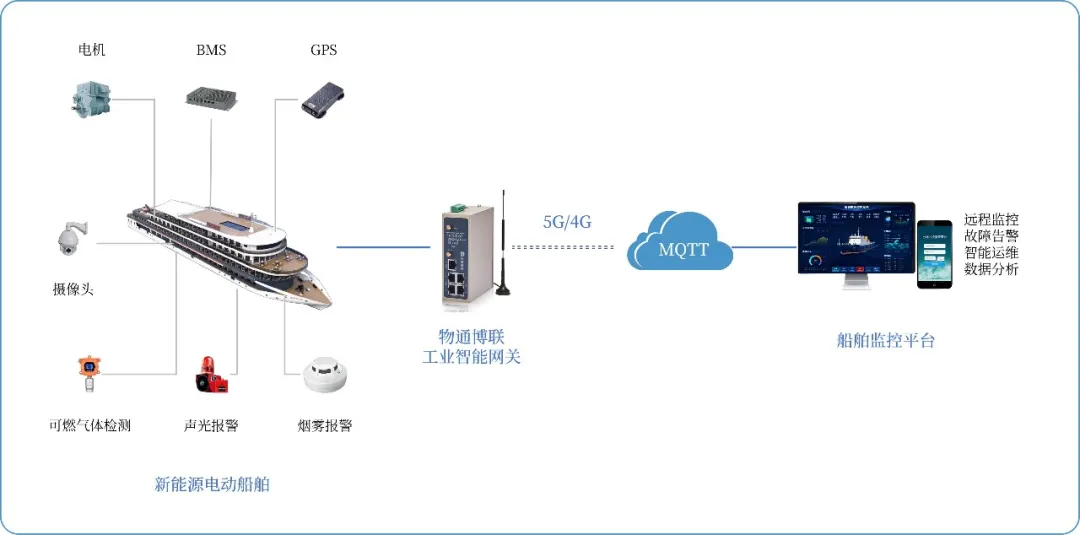船舶長期處于移動(dòng)分散狀態(tài),電機(jī)、電池 BMS 等核心設(shè)備缺乏統(tǒng)一數(shù)據(jù)采集與聯(lián)網(wǎng)手段,故障發(fā)生時(shí)難以及時(shí)察覺,埋下安全隱患。因此,實(shí)現(xiàn)船舶的遠(yuǎn)程監(jiān)控與集中管理,實(shí)時(shí)掌握航行位置與設(shè)備狀態(tài)迫在眉睫。